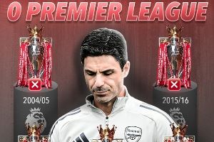 阿森纳已经21年未夺得英超冠军,自从上次夺冠(03/04赛季)之后,阿森纳已经5次获得英超亚军,期间经历了15/16赛季的蓝狐奇迹和近几年的三连亚。
