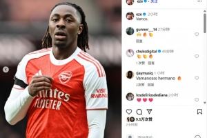 赛后,埃泽更新社媒晒出赛场照庆祝胜利,埃泽直接写道:加油。