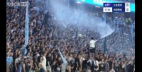 转播镜头给到主队球迷区,有喷水枪为现场助威的主队球迷进行烘托气氛&降温。